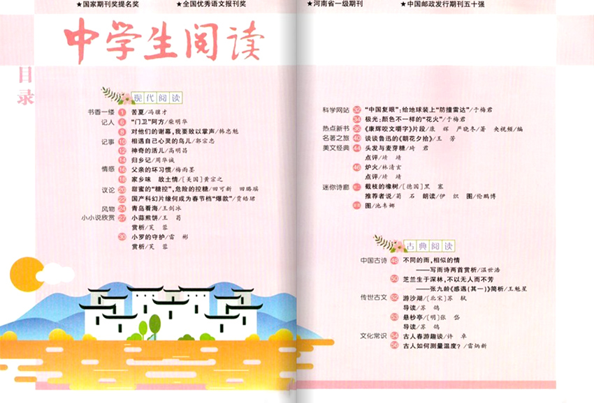 雜志是一本內容豐富、注重原創性、關注教育價值、與時俱進的閱讀類期刊。它承載著培養中學生閱讀興趣和思維能力的使命,旨在為中學生提供一個全面發展和成長的閱讀平臺。